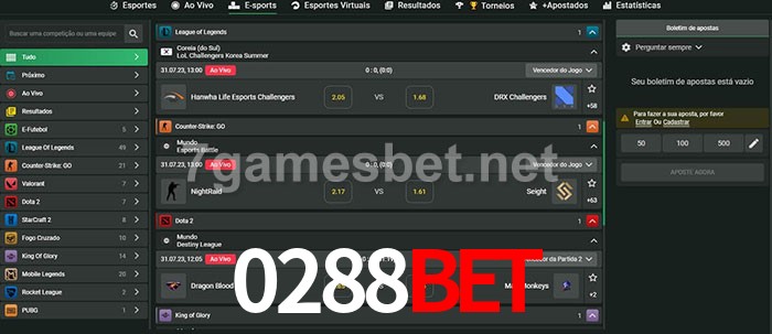 O 0288bet oferece uma grande seleção de opções de apostas em e-sports com probabilidades competitivas